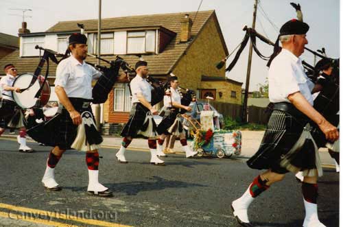 [Click on Image for NEXT] Pipe Band in Canvey Carnival at Smallgains Corner (c) Trish Nicholls - www. Canvey Island .org.uk