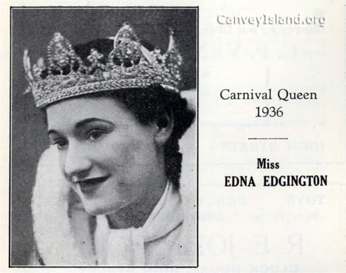 [Click on Image for NEXT] Canvey Carnival Queen 1936 - Miss Edna Edgington Scan (c) www. Canvey Island .org.uk