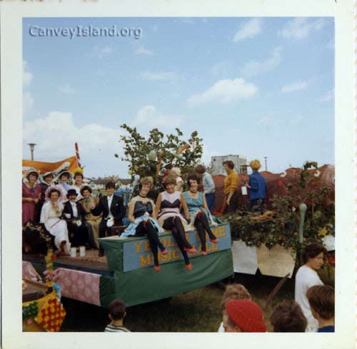 [Click on Image for NEXT] Canvey Carnival : Methodist Wifes Club Float - "Music Hall" - 1965. Note the Goldmine & bungalows in the background. From the photo album of and dedicated to Ivy Knight (c) www. Canvey Island .org.uk