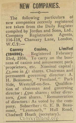 Canvey Casino Ltd registered Feb 23rd 1934